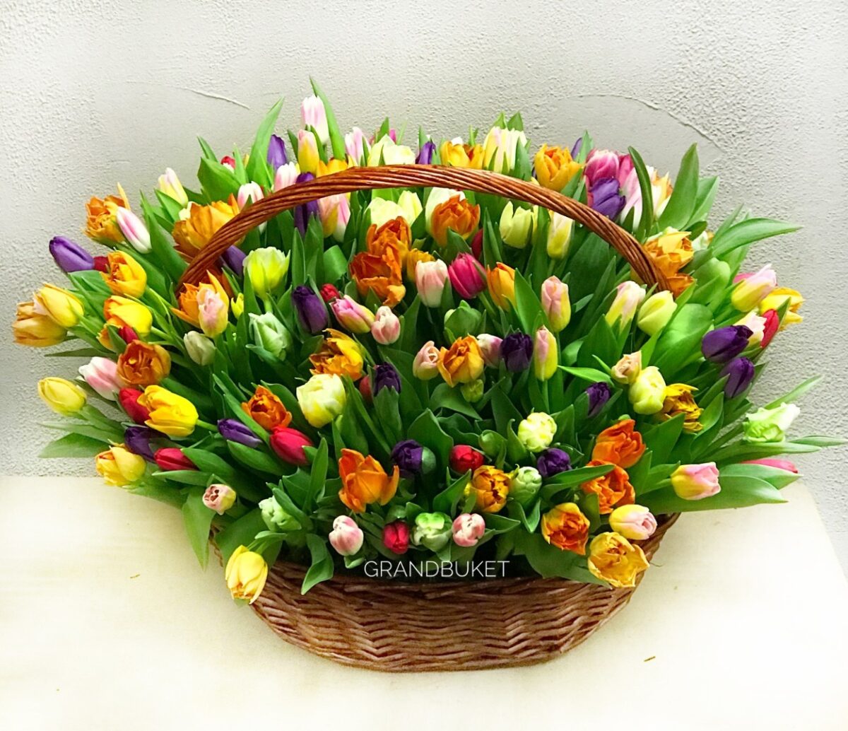 Весна приходит с тюльпанами- это факт. Эффектная корзина тюльпанов в количестве 151 цветок — произведет эффект и останется надолго в памяти. Выглядит такой подарок стильно и дорого. Если удивлять то только так. Действует доставка цветов и самовывоз из магазина. Заказать тюльпаны легко- позвоните нам и мы подберем для вас букет.