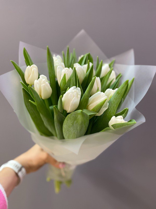 Описание: Хотите подарить радость? Закажите букет из 11 белых тюльпанов! Символ чистой весны и нежности. Этот монобукет выглядит стильно и дорого, но при этом остается доступным подарком для коллеги, учителя или любимой девушки.