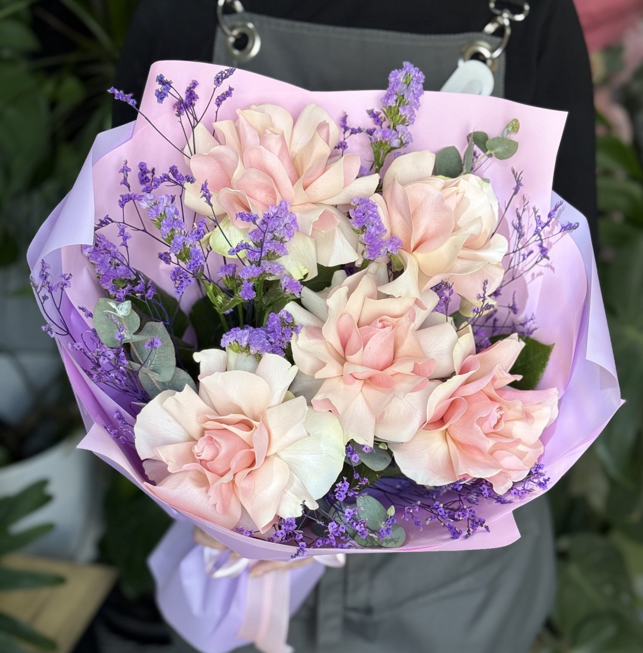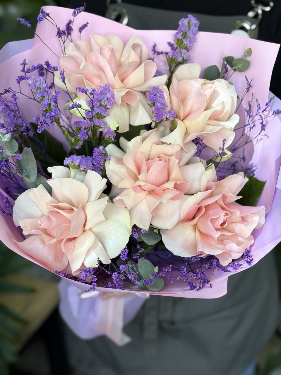 Добавляйте товар и магазин в избранное, чтобы было легче нас найти 5 розовых французских роз с ветками статицы и эвкалипта в стильной упаковке Нежный шик для особенных моментов– букет из 5 роскошных французских роз нежно-розового оттенка, дополненный воздушной статицей и изящным эвкалиптом. Идеальное сочетание элегантности и природного очарования! Почему выбирают этот букет? Премиальные розы– свежие, крупные бутоны с тонким ароматом. Стильный акцент– статица и эвкалипт добавляют объем и текстуру. Эксклюзивная упаковка– дизайнерская подача для безупречного впечатления. Универсальный подарок– на свидание, юбилей, 8 Марта, 14 февраля , на День матери, 1 сентября , учителю, на выпускной или просто без повода. Доставка в надежной упаковке – сохраняем свежесть и красоту каждого цветка. Подарите эмоции вместе с эталоном цветочной эстетики! Заказывайте прямо сейчас на Flowwow. 1 сентября, день знаний, школа, первоклассник, учитель, классному руководителю, подарок учителю, набор учителю, учительница, педагог, преподавателю, school, back to school, 1 september, teacher.