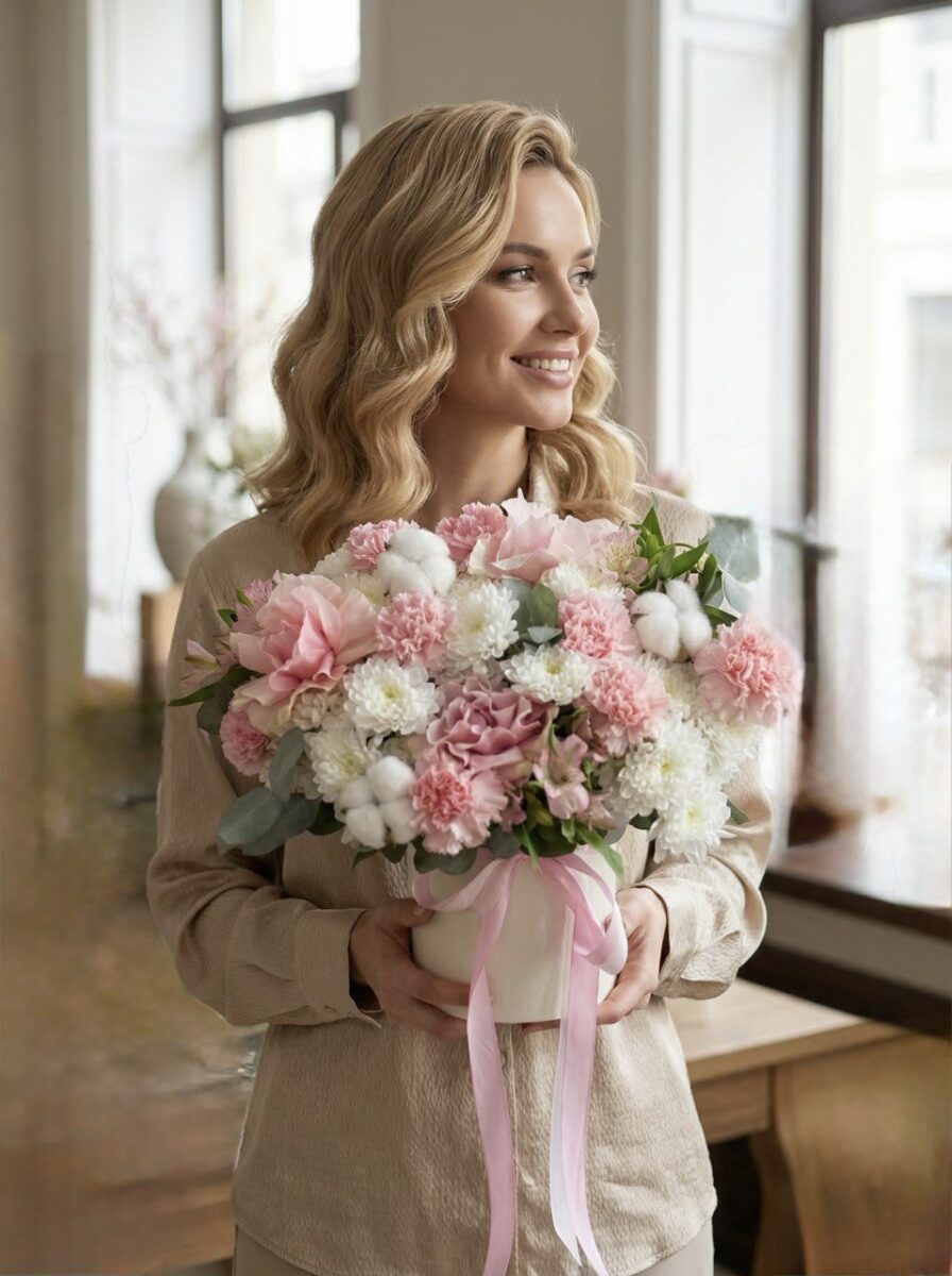 Удобство: Цветы в коробке удобно везти и дарить — они не мнутся и не теряют форму.
